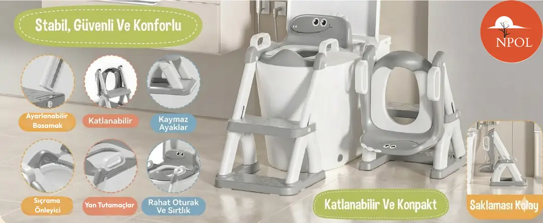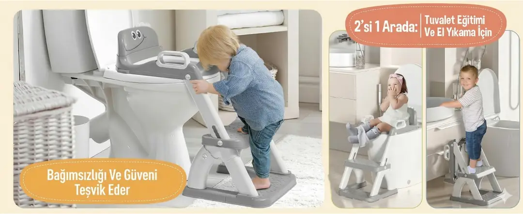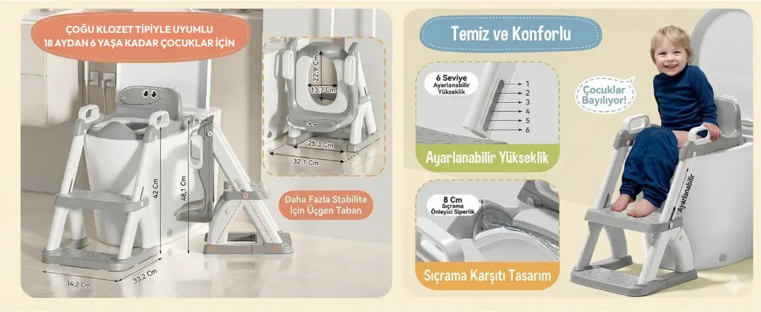 - Ayarlanabilir Yükseklik: İki kademeli basamak yapısı, çocuğunuzun boyuna ve evinizdeki klozetin yüksekliğine göre kolayca ayarlanabilir .